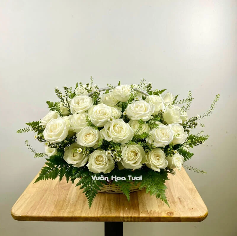 Phiên Bản: Giỏ Hoa Kỷ Niệm Tone Trắng