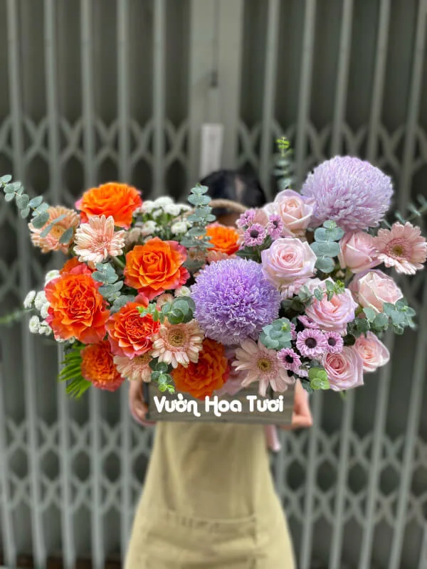 (*) Shop hoa tươi với dịch vụ đặt hoa online Vườn Hoa Tươi đảm bảo phong cách cắm, tone màu sắc.