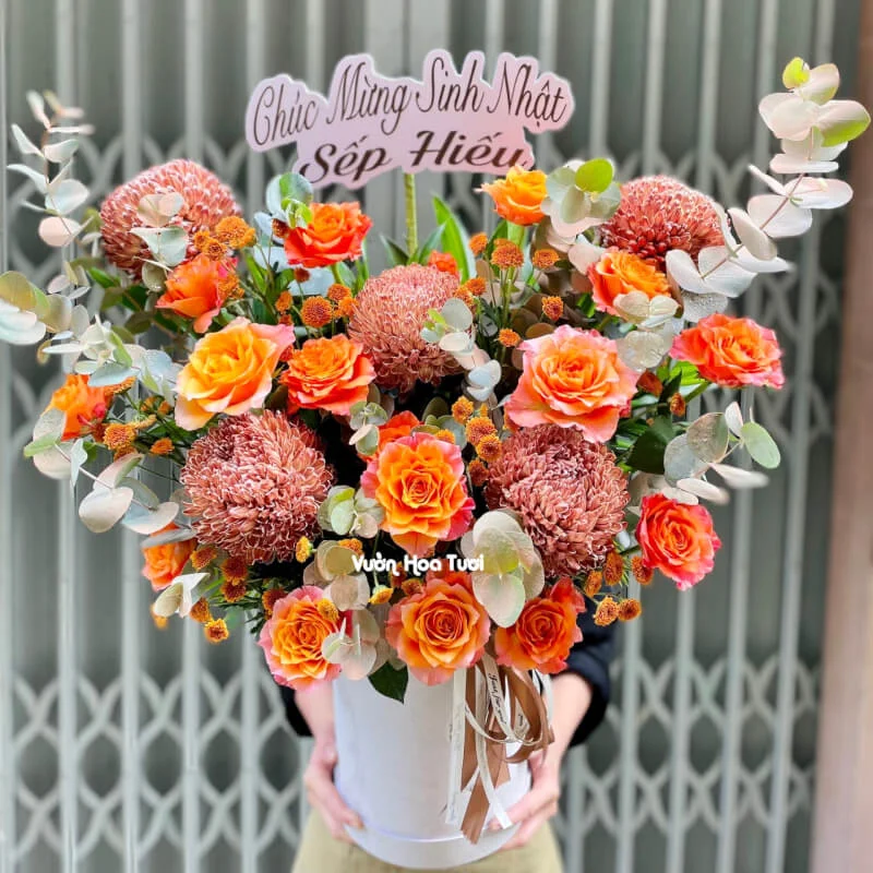 Xem thêm về các mẫu hoa sinh nhật tặng sếp từ chúng mình tại: Lẵng Hoa Sinh Nhật Sang Trọng